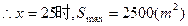 有一批材料可以建成长为的围墙,如果用材料在一边靠墙 难度:简单 题型:解答题 来源:不详 2025-08-25 09:00:01 题目 有一批材料可以建成长为的围墙,如果用材料在一边靠墙的地方围成一块矩形场地,中间用同样的材料隔成三个面积相等的矩形(如图),则围成的矩形的最大面积是多少? 答案 2500 解析 设每个小矩形长为x,宽为y,则 相关题目 有一批材料可以建成长为的围墙,如果 一个用鲜花做成的花柱,它的下面是一 如图某粮食储备库占地呈圆域形状,它 设,若a+b+c=0,f(0)f(1)>0, 二次函数f(x)=(I)若方程f(x)=0无实数 已知函数f(x)=,其中(I)若b>2a,且 已知函数f(x)=ax2+bx+c,其中a∈N*, 对于函数(a>0),如果方程有相异两根,. 已知b>-1,c>0,函数的图象与函数 。直线l2与函数的图象以及直线l1、 闽ICP备2021017268号-8