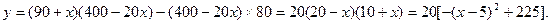 进货原价为80元的商品400个,按90元一个售出时 难度:简单 题型:解答题 来源:不详 2025-08-24 20:00:02 题目 进货原价为80元的商品400个,按90元一个售出时,可全部卖出。已知这种商品每个涨价一元,其销售数就减少20个,问售价应为多少时所获得利润最大? 答案 95 解析 设售价为元时利润为,此时售量为 当时,(元)。答:售价为95元时获利最大,其最大值为4500元。 相关题目 进货原价为80元的商品400个,按90元 (12分)二次函数f(x)=ax2+x+1(a>0 已知,求的最小值。 若二次函数的图象与x轴有两个不同 已知二次函数对任意的都有,设向量,,,,当 已知二次函数,若对于任意的,,且,,求证: 已知实数满足,则的最大值是 已知函数满足,且对一切实数都有,求实 已知且,函数满足,,(Ⅰ)求证: ;(Ⅱ)求 已知一次函数的图象过点,一次函数的 闽ICP备2021017268号-8