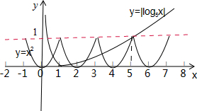 已知最小正周期为2的函数y=f(x),当x∈[- 难度:一般 题型:填空题 来源:不详 2023-10-01 05:00:02 题目 已知最小正周期为2的函数y=f(x),当x∈[-1,1]时,f(x)=x2,则函数y=f(x)(x∈R)的图象与y=|log5x|的图象的交点个数为______. 答案 当x∈[-1,1]时,f(x)=x2,∴f(x)∈[0,1];又函数y=f(x)是最小正周期为2的函数,当x∈R时,f(x)∈[0,1].y=|log5x|的图象即把函数y=log5x的图象在x轴下方的对称的反折到x轴的上方,且x∈(0,1]时,函数单调递减,y∈[0,+∞);x∈(1,+∞)时,函数y=log5x单调递增,y∈(0,+∞),且log55=1.据以上画出图象如图所示:根据以上结论即可得到:函数y=f(x)(x∈R)的图象与y=|log5x|的图象的交点个数为5.故答案为5. 解析